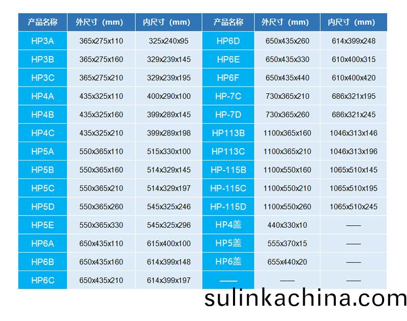 外(wai)尺寸:1100*365*210mm 內尺寸(cun):1046*303*196mm 材(cai)質:PP 重量:3400g