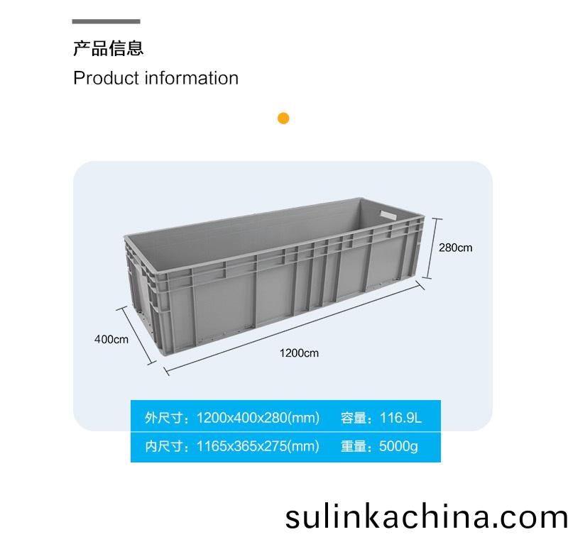 外(wai)尺寸:1200*400*280mm 內尺寸:1165*365*275mm 材質(zhi):PP 重量(liang):5000g