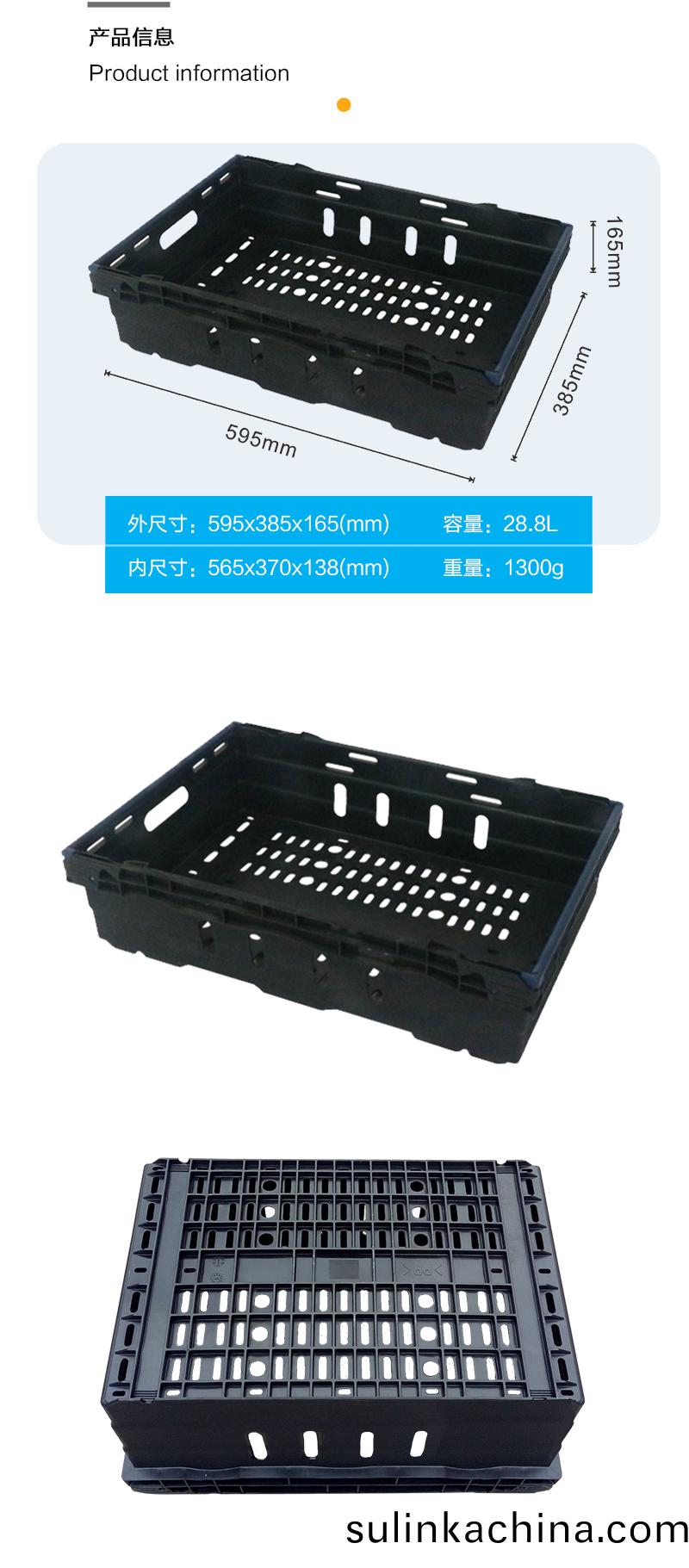 外尺寸:595*385*165mm 內尺寸:565*370*138mm 材質:PP 重量:1300g