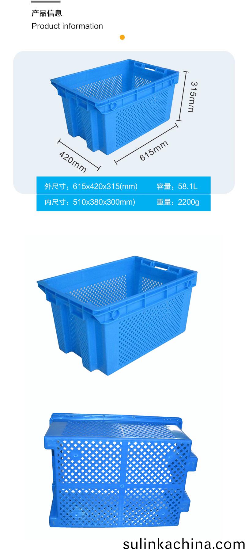 外尺寸:615*420*315mm 內尺寸:510*380*300mm 材質(zhi):PP 重(zhong)量:2200g