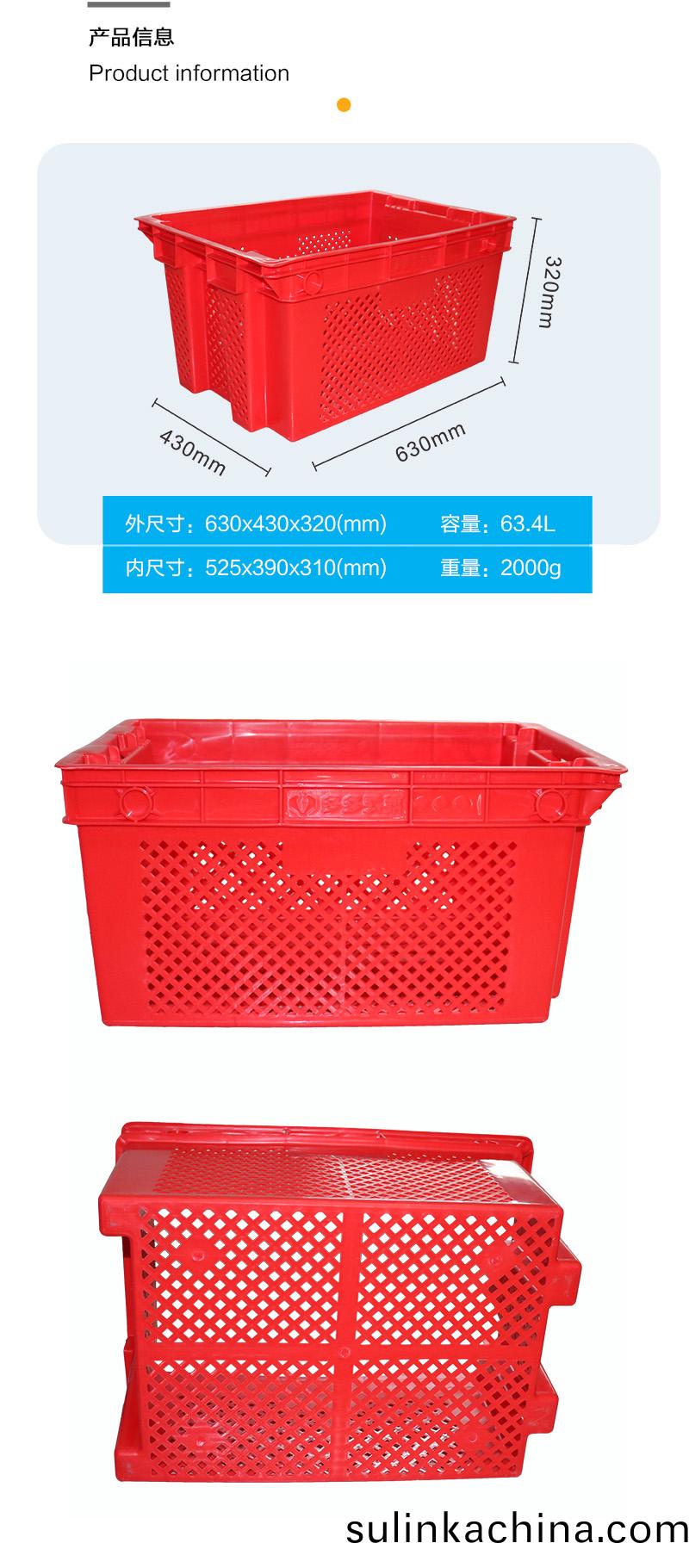 外尺寸:630*430*320mm 內尺寸:525*390*310mm 材質:PP 重量:2000g