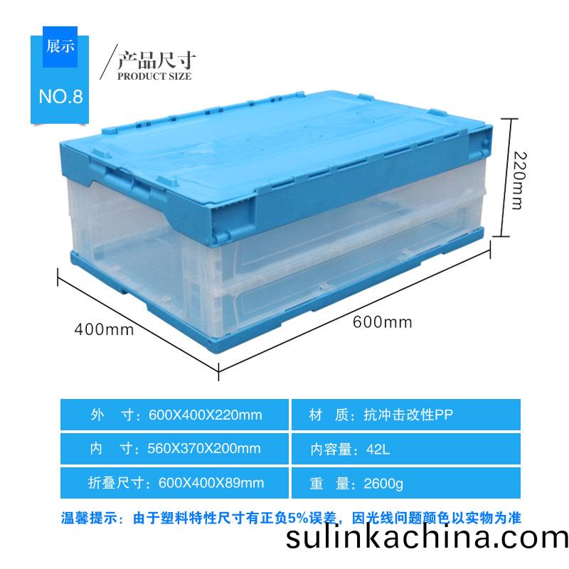 外尺寸:600×400×220mm 內尺寸:560×370×195mm 材質:PP 重量:1970g