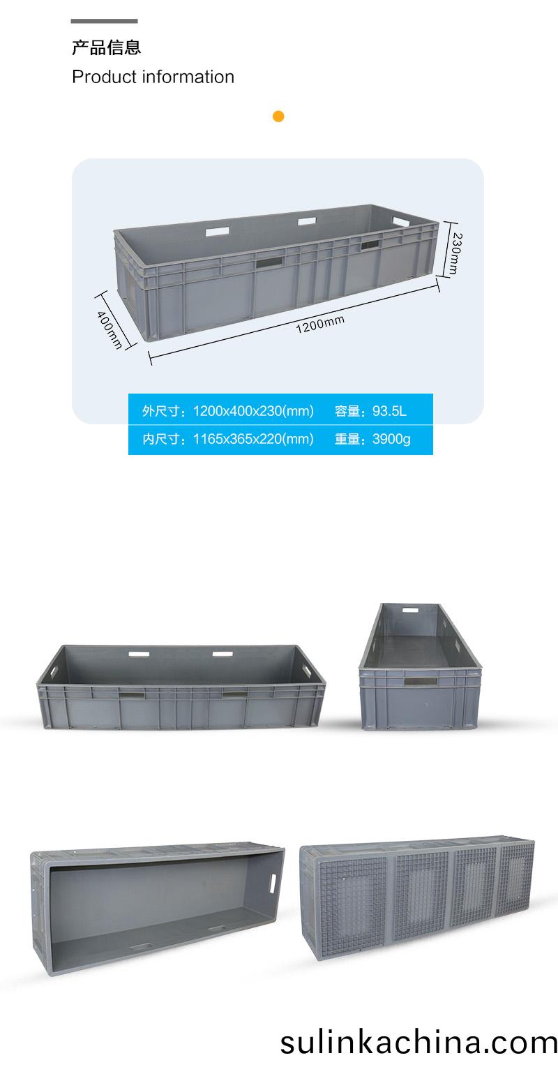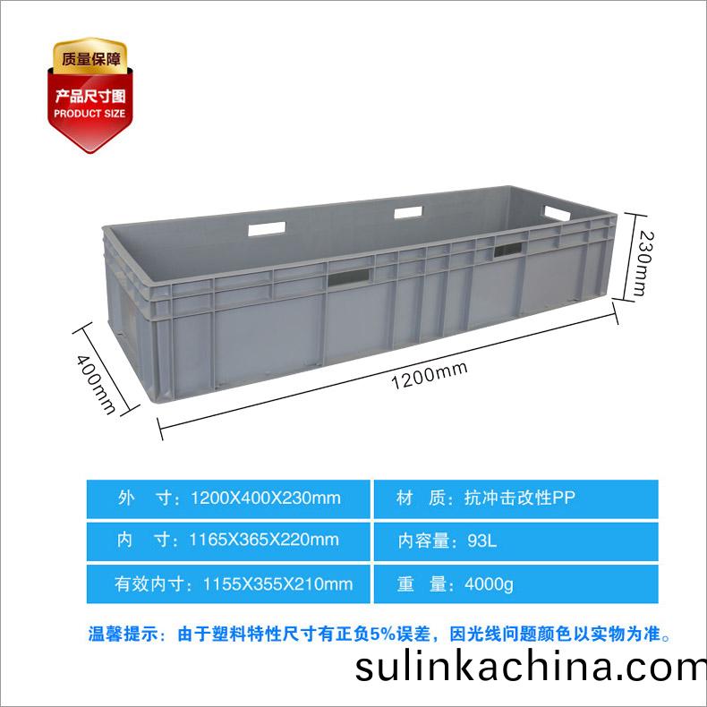 外尺寸:1200*400*230mm 內(nei)尺(chi)寸:1165*365*210mm 材質:PP 重量:3960g