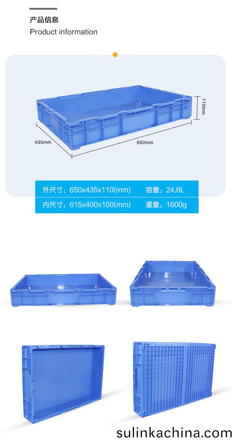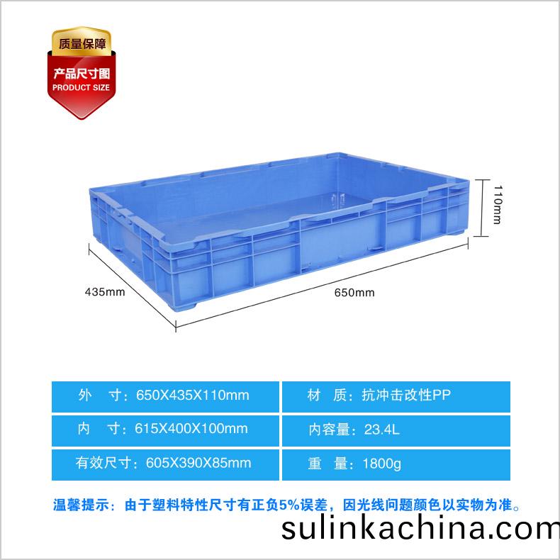 外尺(chi)寸:650*435*110mm 內尺寸:615*400*100mm 材質:PP 重量:1600g