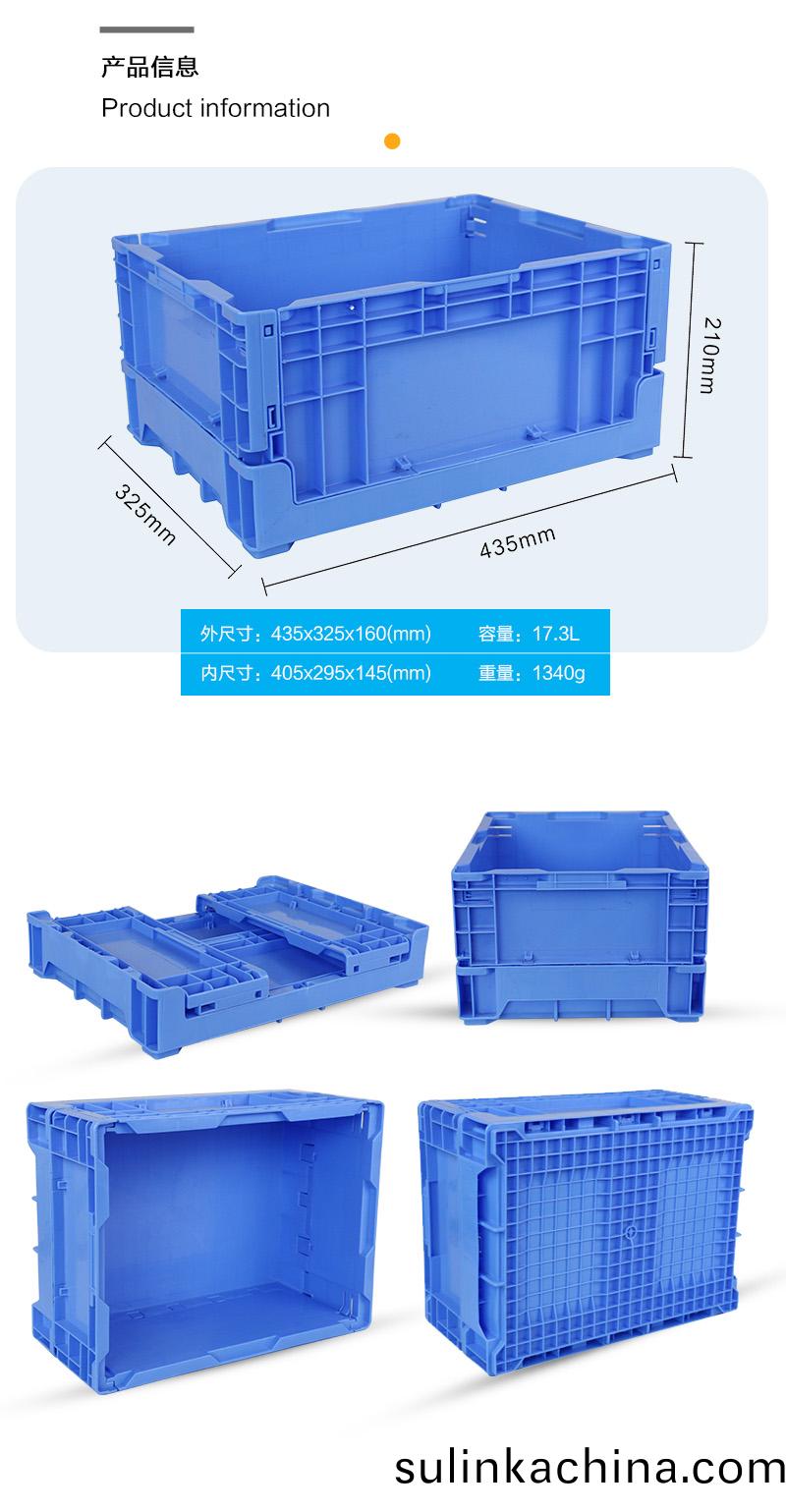 外尺寸:435*325*210mm 內尺(chi)寸:405*295*195mm 材質:抗衝擊改性PP 重(zhong)量:1500g