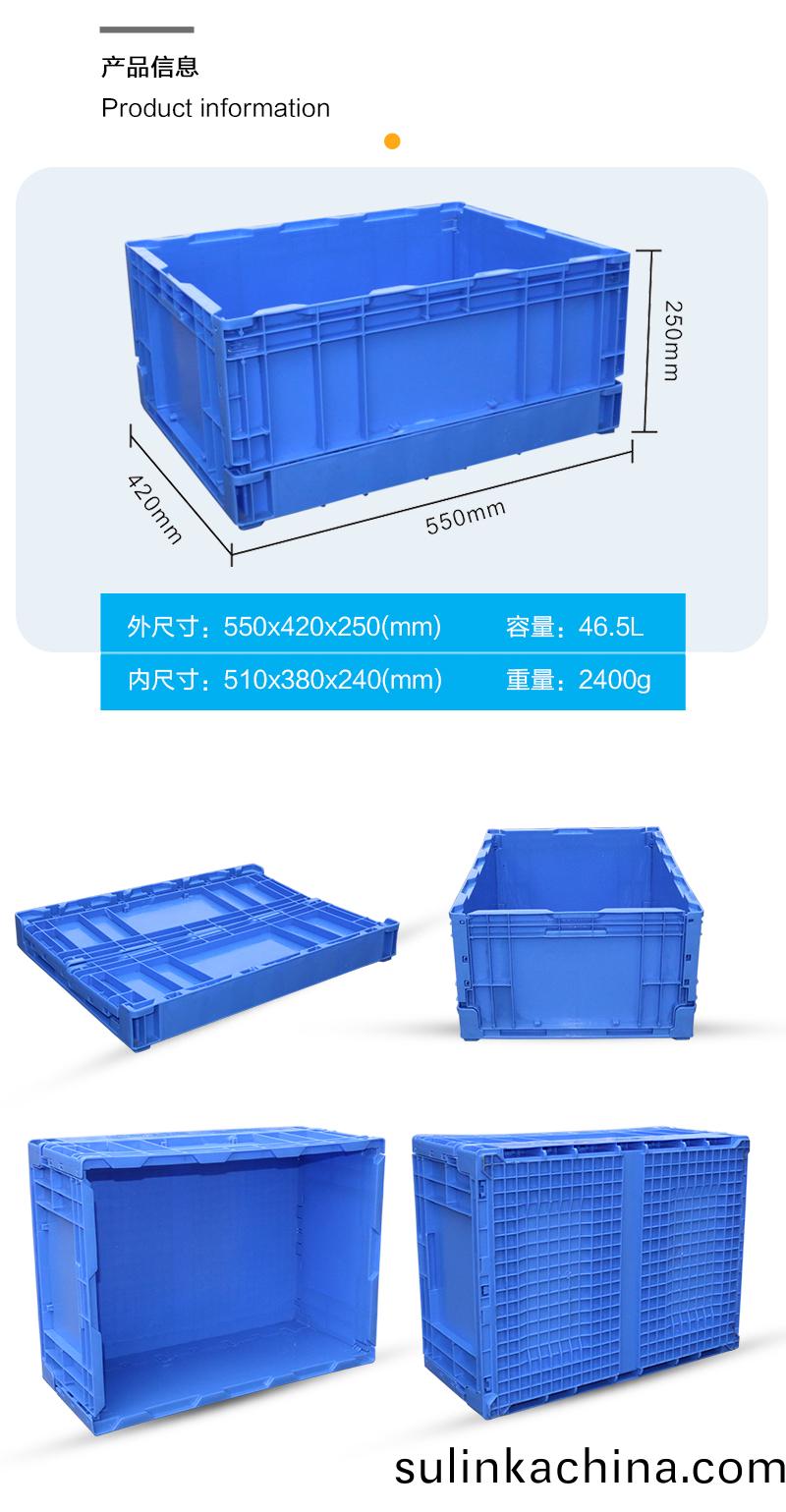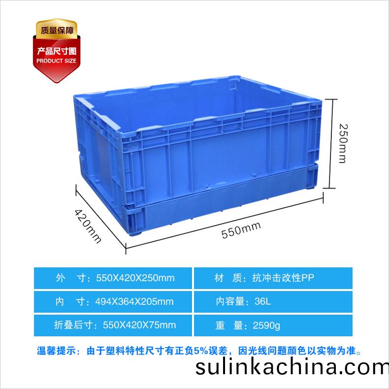 外尺寸:550*420*250mm 內(nei)尺(chi)寸:510*380*240mm 材質:抗衝(chong)擊改性PP 重量:2400g