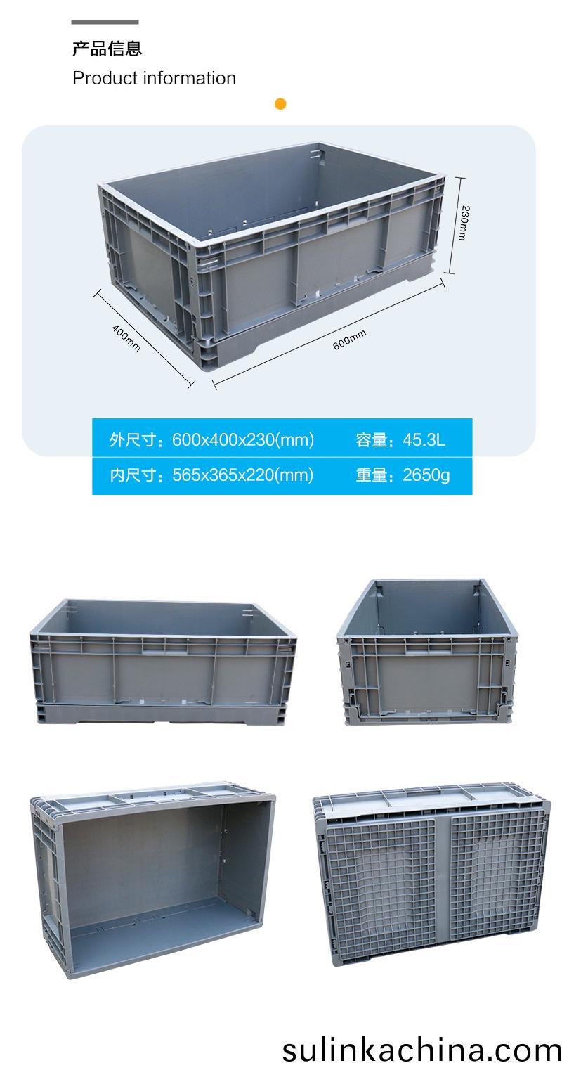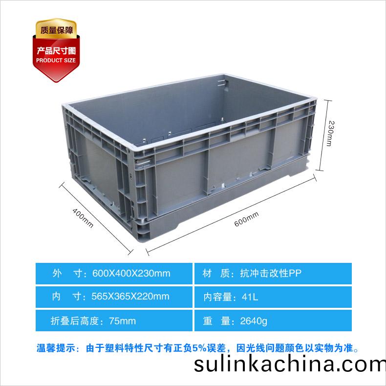 外尺(chi)寸:600*400*230mm 內尺寸:565*365*220 材質:PP 重量:2640g