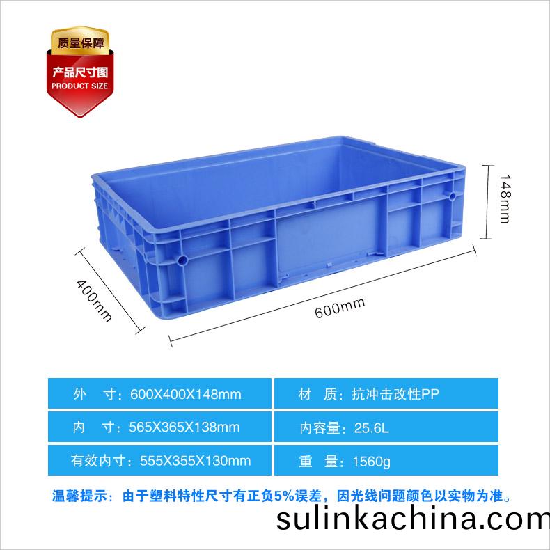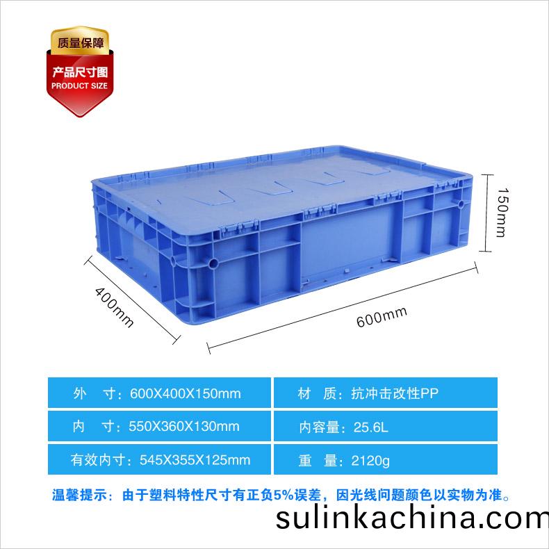 外尺寸:600×400×147mm 內尺寸:550×360×130mm 材質:抗衝擊改性PP 重量:1560g