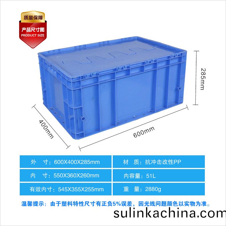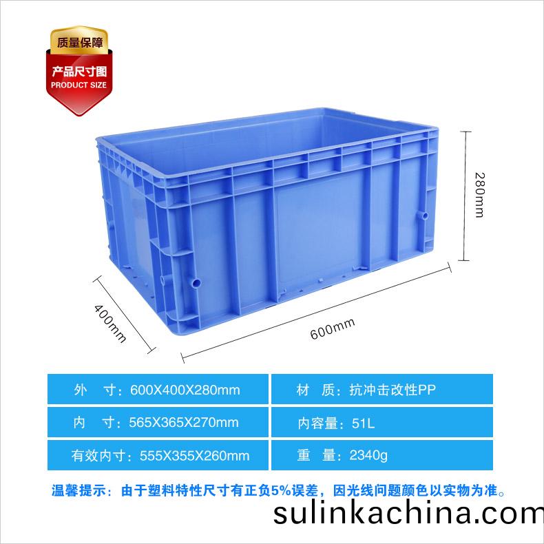 外尺寸(cun):600×400×280mm 內尺寸(cun):560×360×260mm 材(cai)質:抗衝擊改性PP 重量:2340g