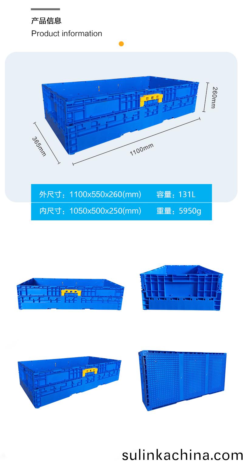 外尺(chi)寸:1100*550*260mm 內(nei)尺寸:1065*515*250mm 材質(zhi):PP 重量:5950g