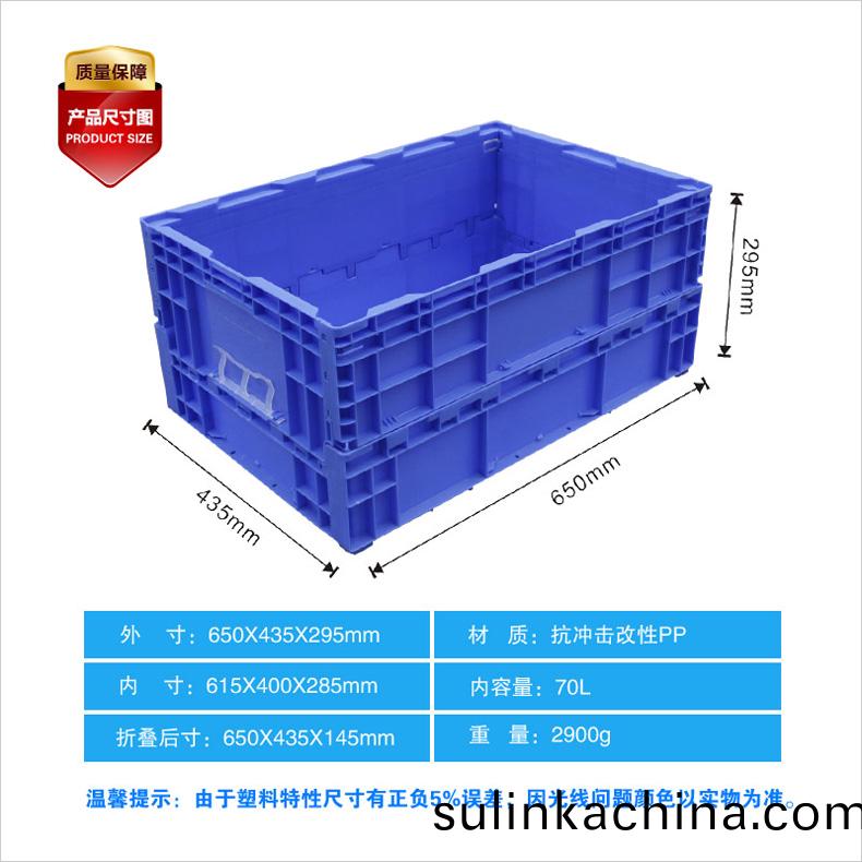外(wai)尺寸:650*435*295mm 內尺寸:610*400*285mm 材質:抗衝擊改性PP 重(zhong)量:2900g
