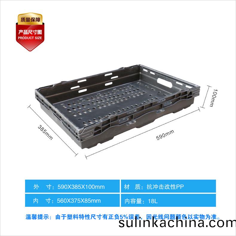 外尺寸:590*385*100mm 內尺寸:560*375*85mm 材質:抗衝擊改性(xing)PP 重(zhong)量:--