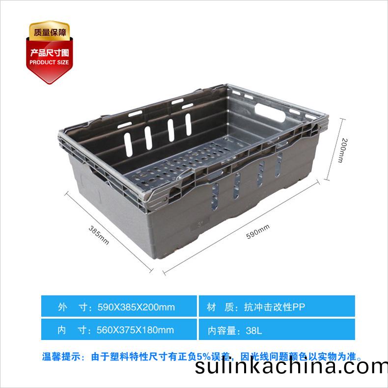 外尺寸:590*385*200mm 內尺寸:560*375*180mm 材質:抗衝擊改性PP 重量(liang):--