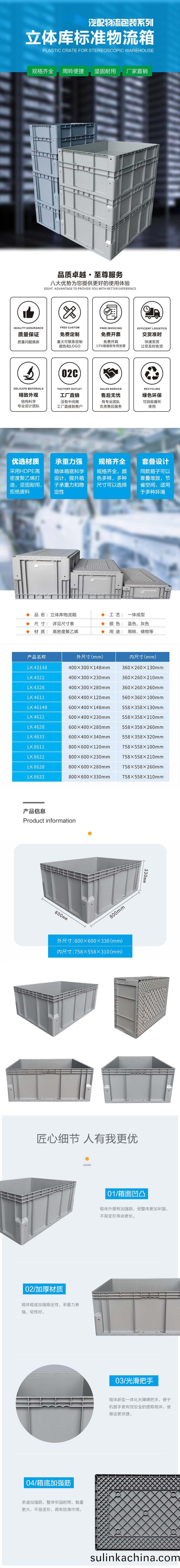 外尺寸:800*600*330 內尺寸:758*558*310 材質:PP 重量:4700g