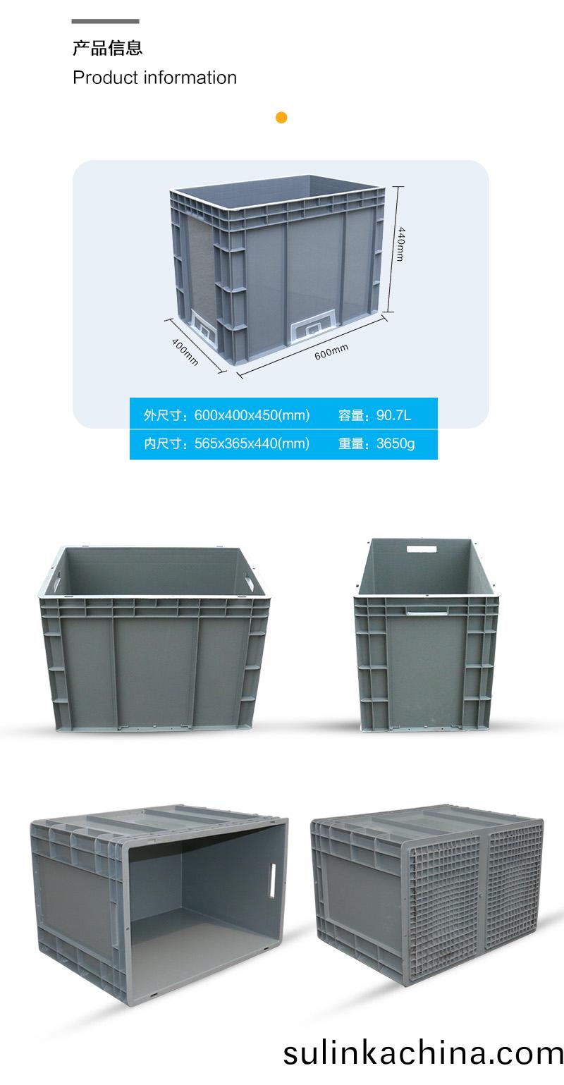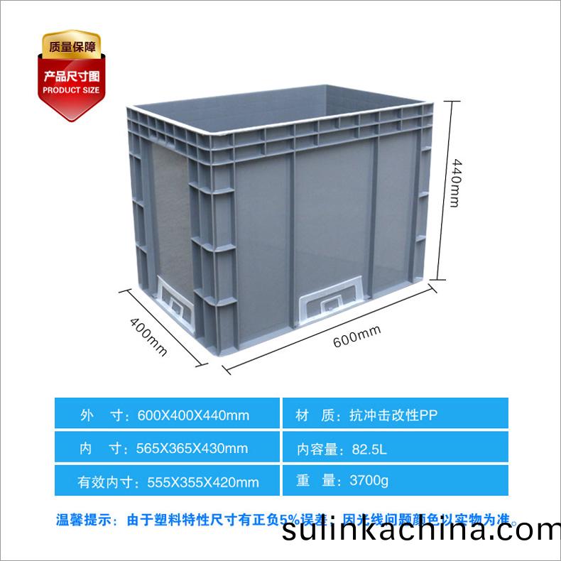 外尺寸:600X400X440mm 內尺寸:565X365X430mm 材質:抗(kang)衝(chong)擊改性PP 重量:3.6kg