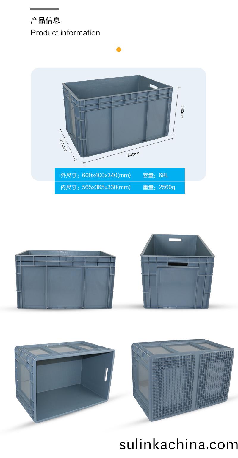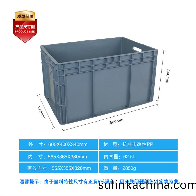 外尺寸:600X400X340mm 內尺寸:565X365X330mm 材(cai)質:抗(kang)衝擊改性PP 重(zhong)量:2.56kg