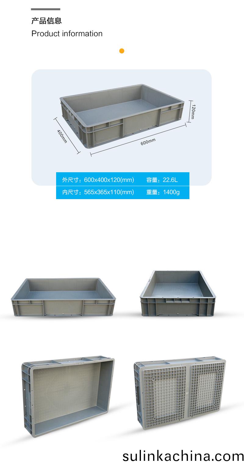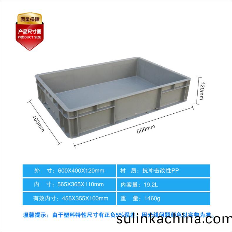 外尺寸(cun):600X400X120mm 內尺寸:565X365X110mm 材質:抗衝擊改性PP 重(zhong)量:2.6kg